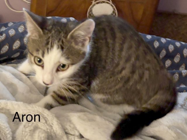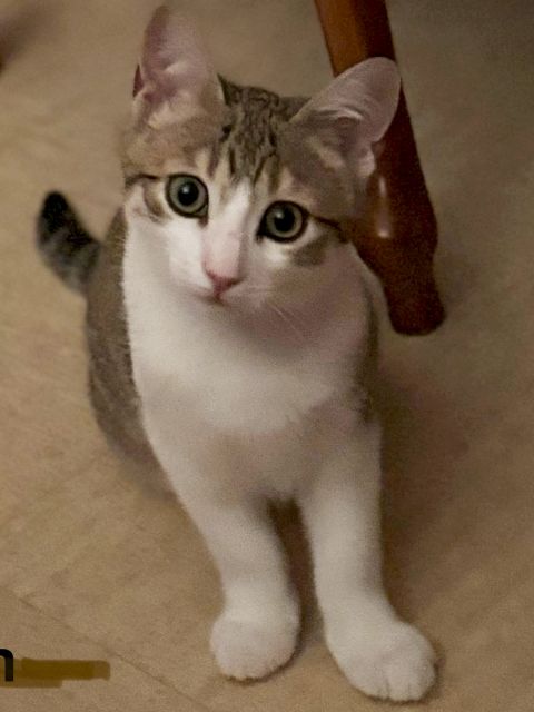 | Sexe: femelle Type: européen Robe: tigré et blanc |