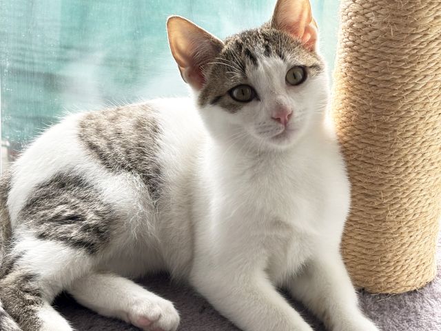 Zébra est un chat tendre, espiègle et qui apprécie les caresses.