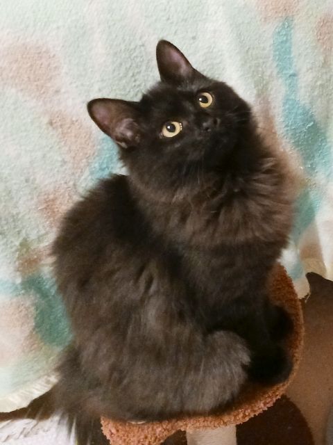 Ashka est une chatonne encore timide, mais qui joue avec son frère Aros et sa soeur Anita. Si l'adoptant habite un appartement en étage, il faudra protéger les fenêtres et balcons.